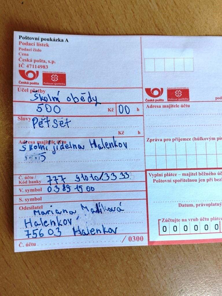 5. A - ČJ - Poštovní poukázka